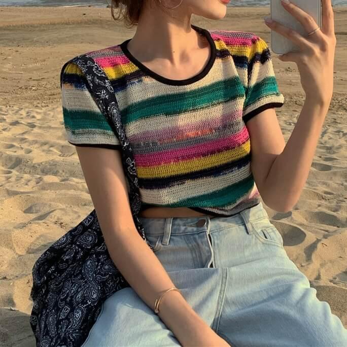 ニット セーター ニット レディース 新品 安い 大きめ トップス 韓国 40代 カットソー ボーダー 虹 レインボー 半袖 カラフル サマーニット カジュアル 代 Jr295 ワンピの里 通販 Yahoo ショッピング